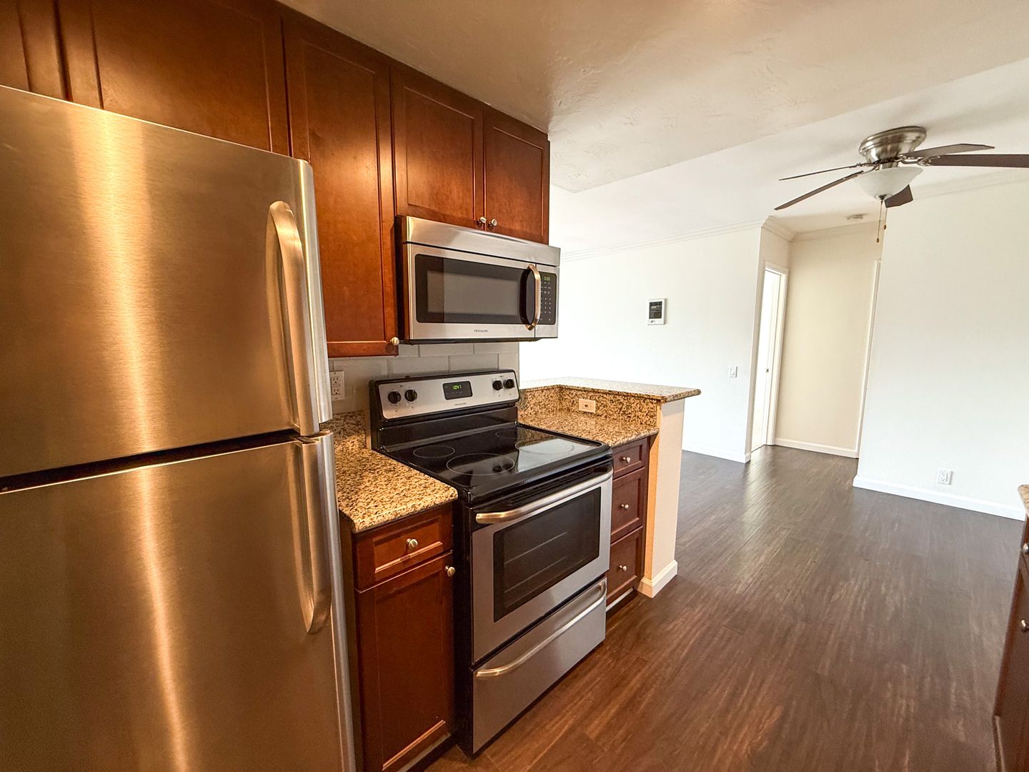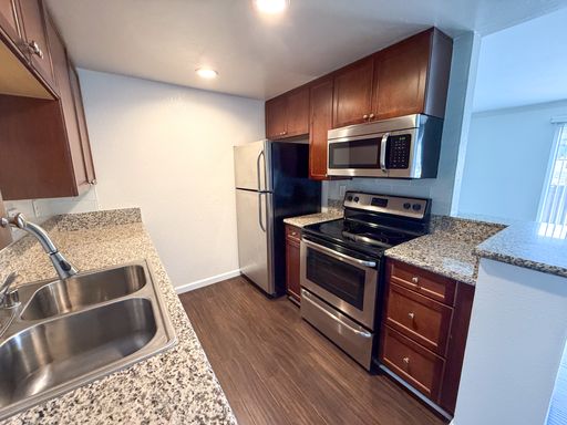 This beautiful 1-bedroom University Heights condo features stylish plank wood flooring, sleek stainless-steel appliances, and a granite countertop kitchen. Enjoy comfort year-round with ceiling fans to keep you cool during warm California summers.