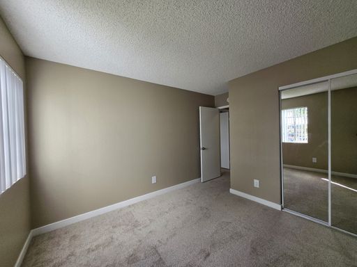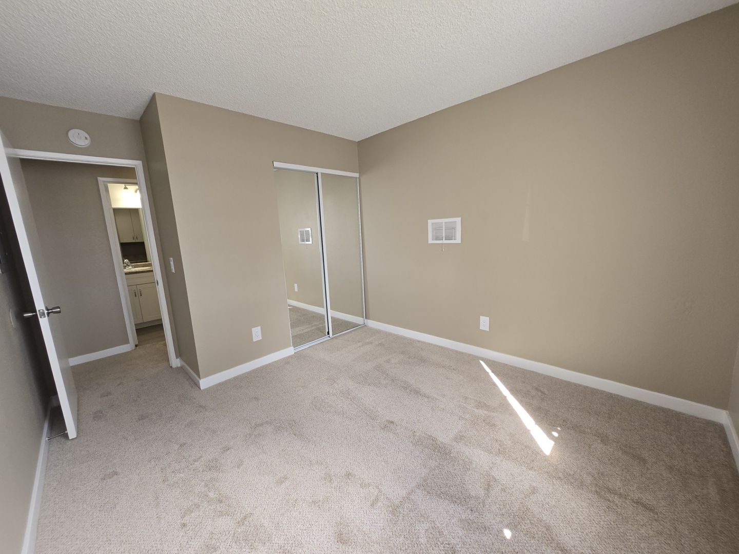-Mirrored closet doors in bedroom