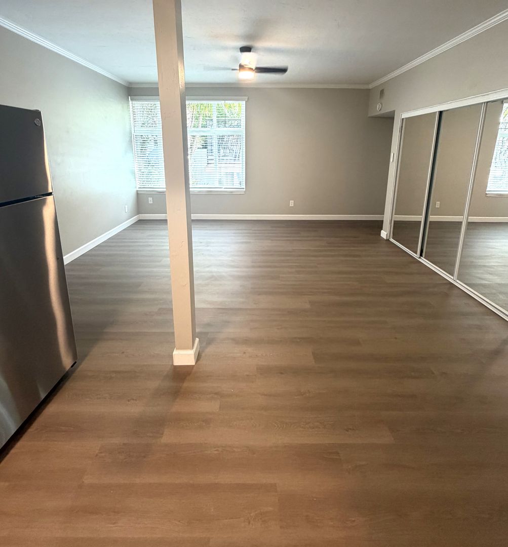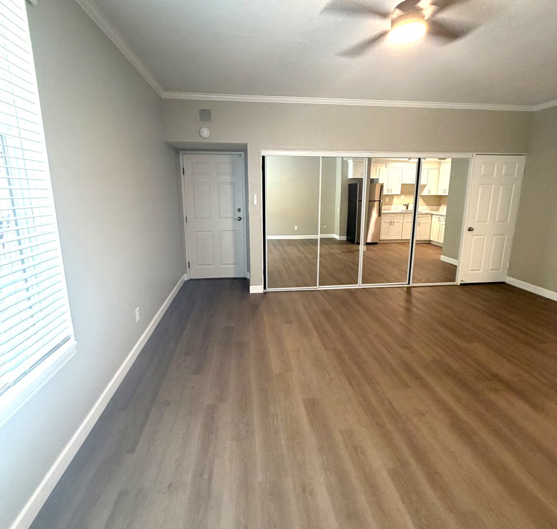 This beautifully renovated first floor studio features vinyl plank floors, large windows, and closet space galore! The gated property is at the center of San Diego's most desirable rental neighborhood - a short stroll to local shops, dining and entertainment. This "Park Towers" building has an inviting fenced & heated pool and, best of all, the beautiful and serene Balboa Park is right in your back yard!