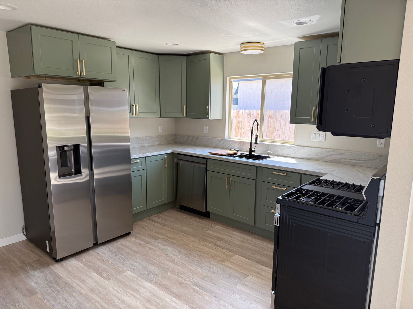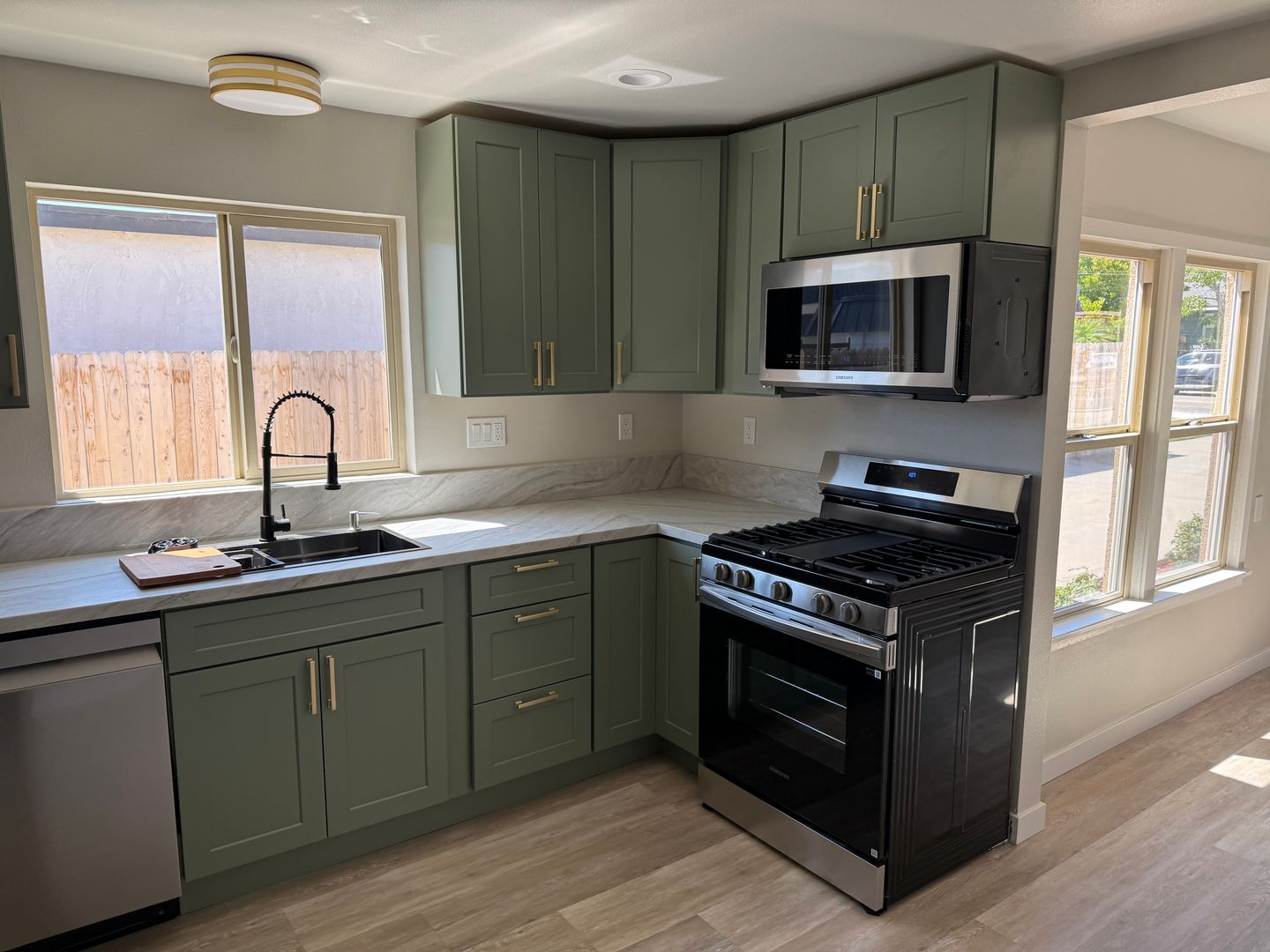 -Stainless steel stove, refrigerator, microwave & dishwasher