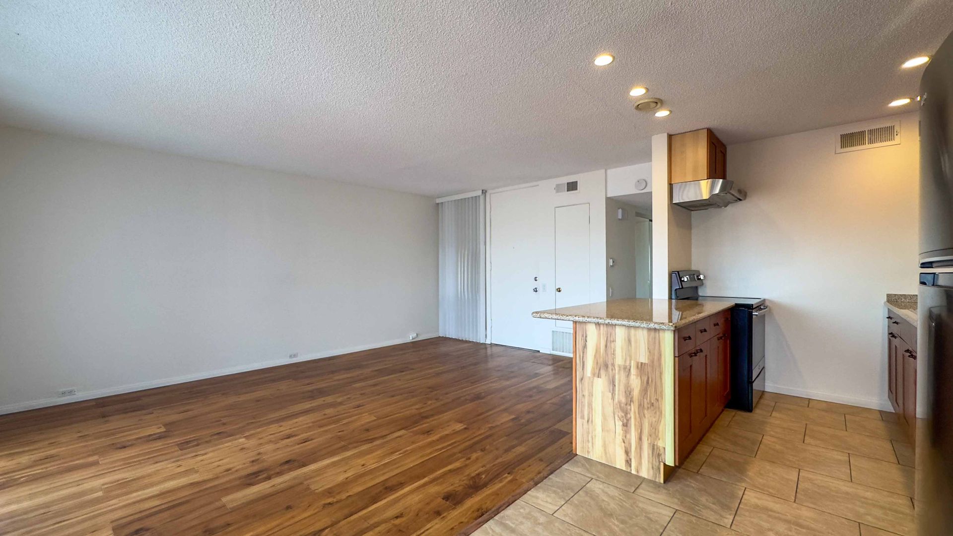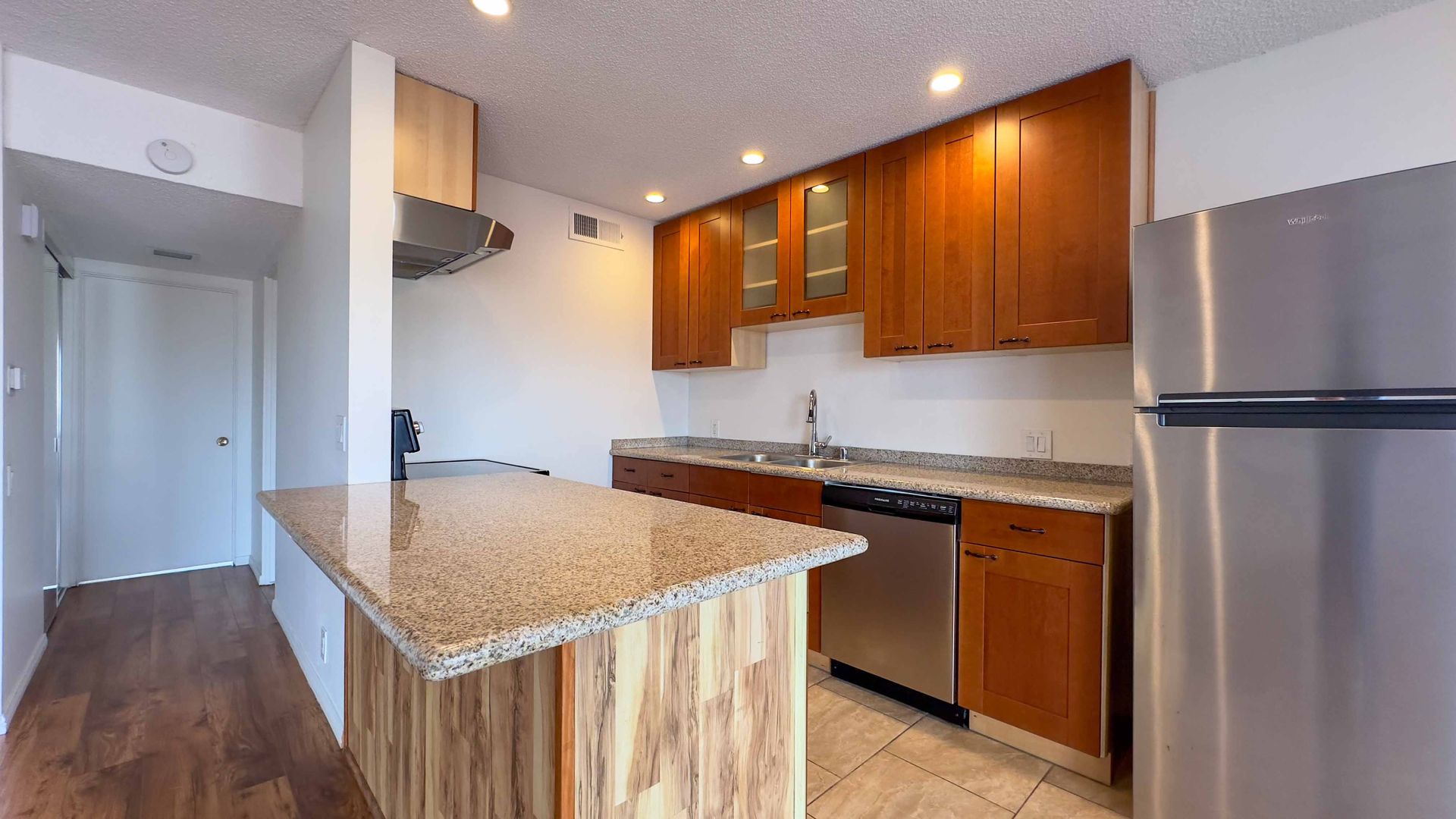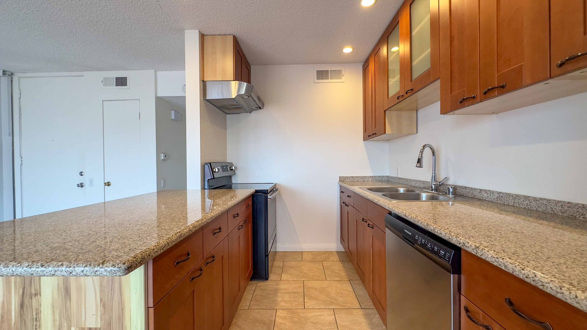 - Stainless Steel appliances: electric range, refrigerator, and dishwasher.