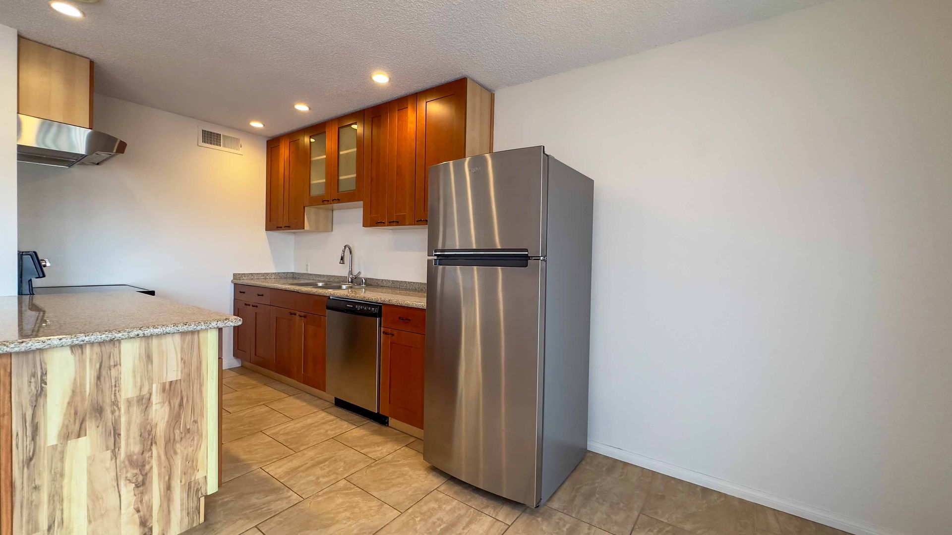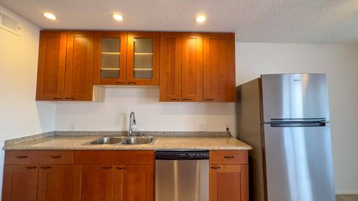 - Solid-surface counters and newer cabinetry.