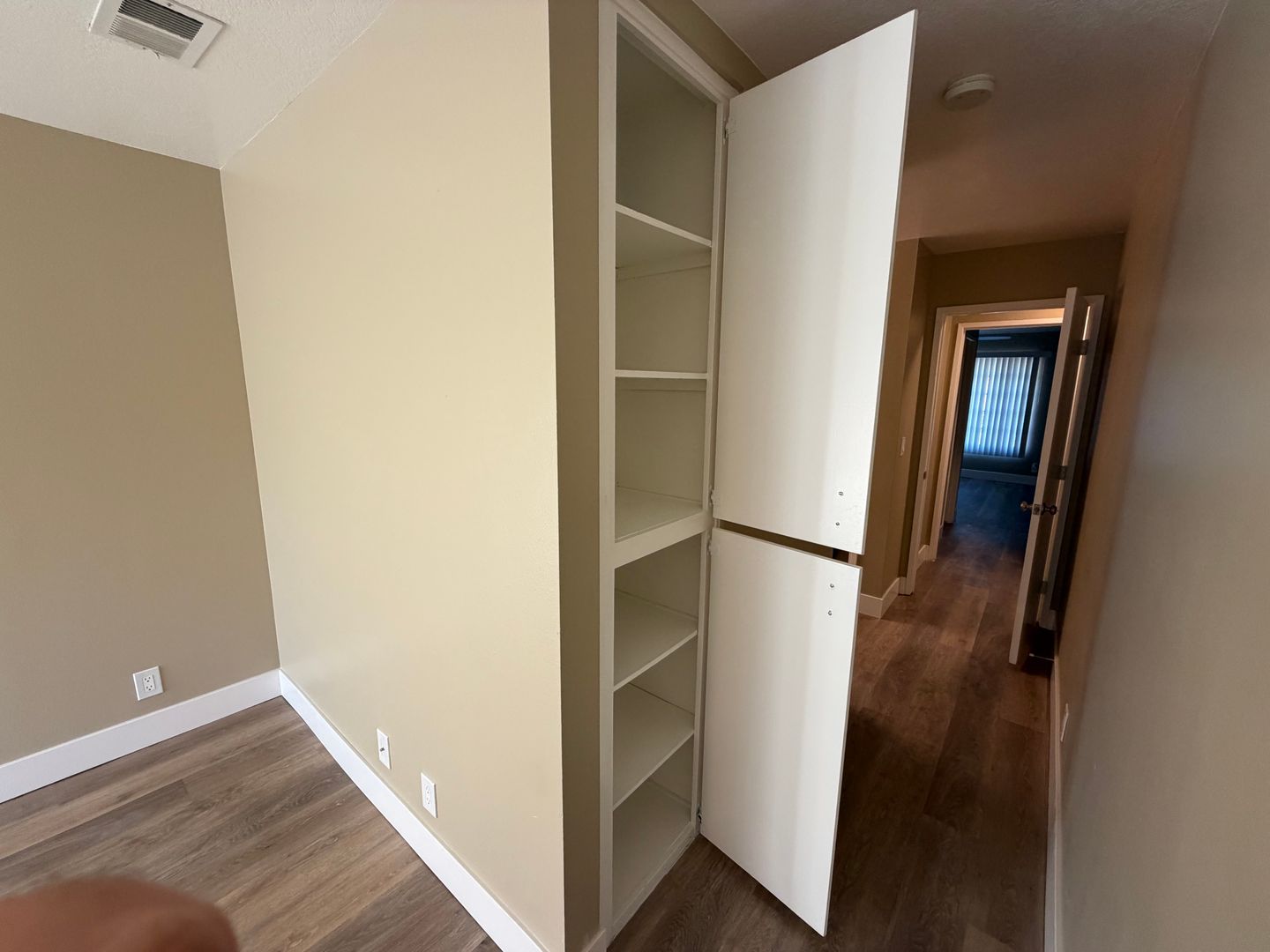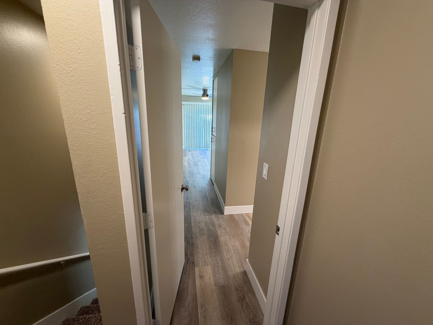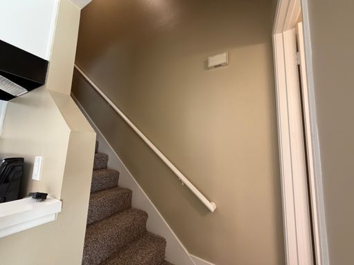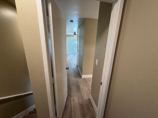 - Wood planks throughout the entire apartment (Carpet in the stairway)