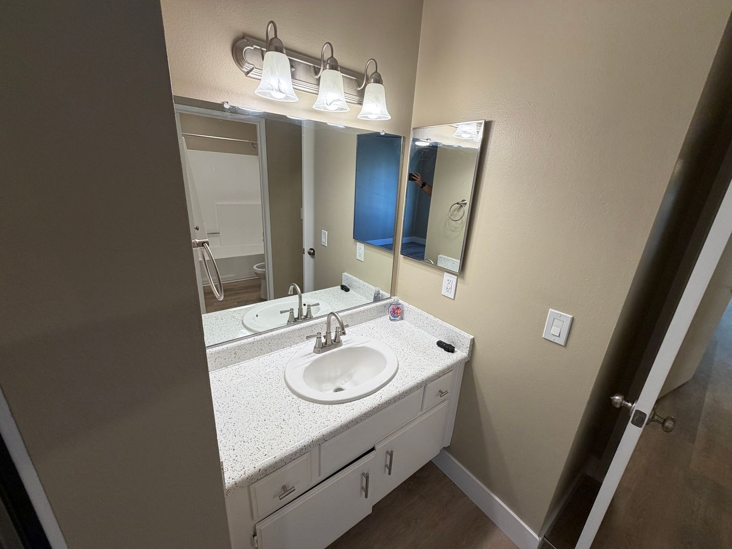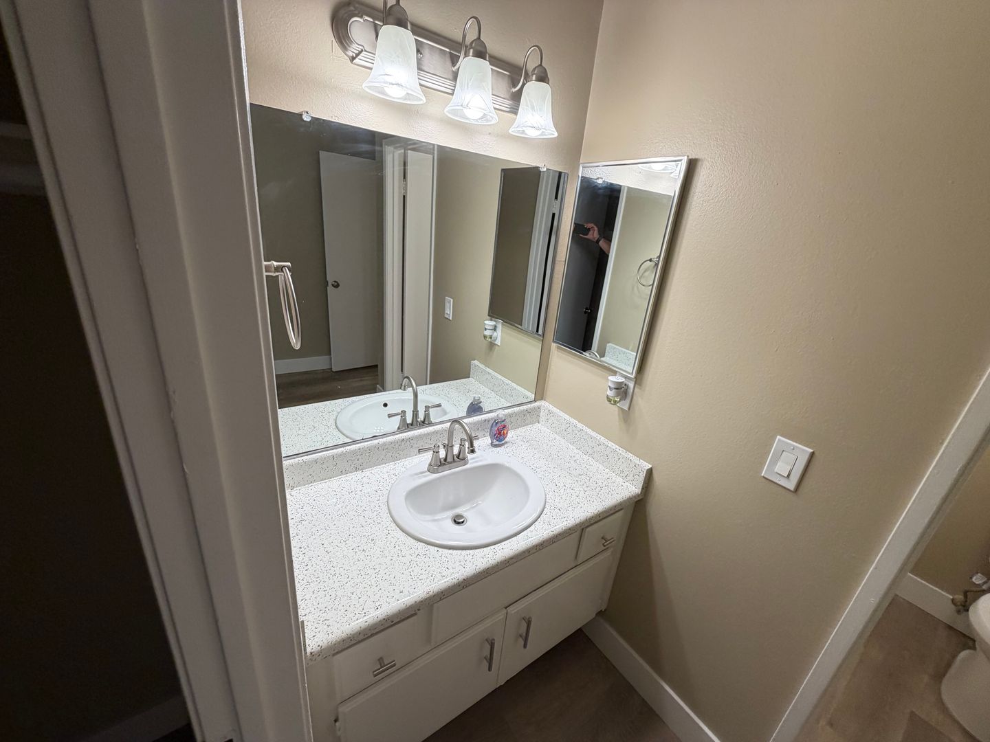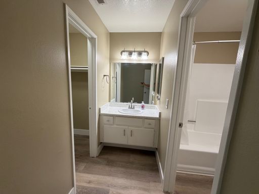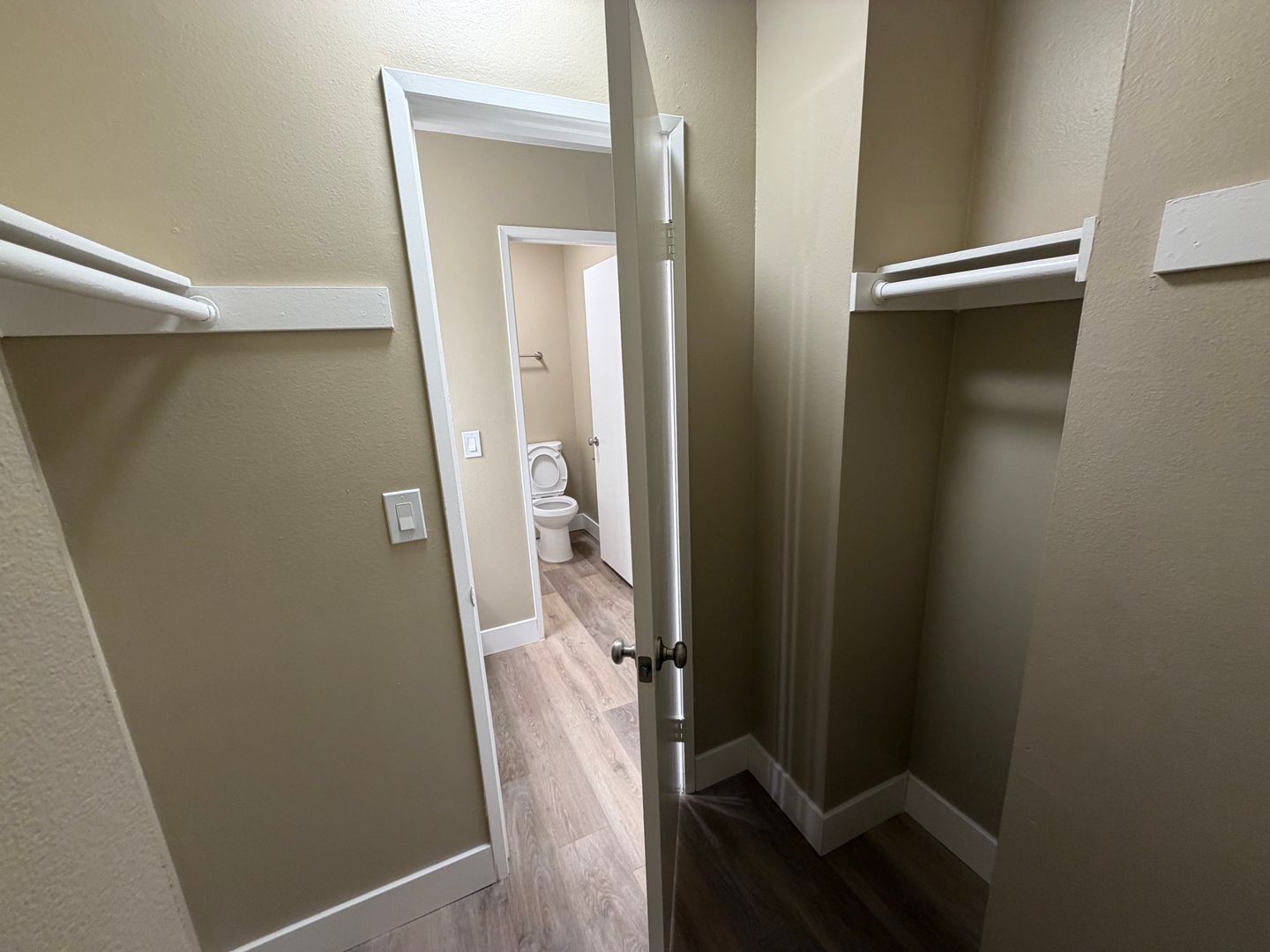 - Wood planks throughout the entire apartment (Carpet in the stairway)