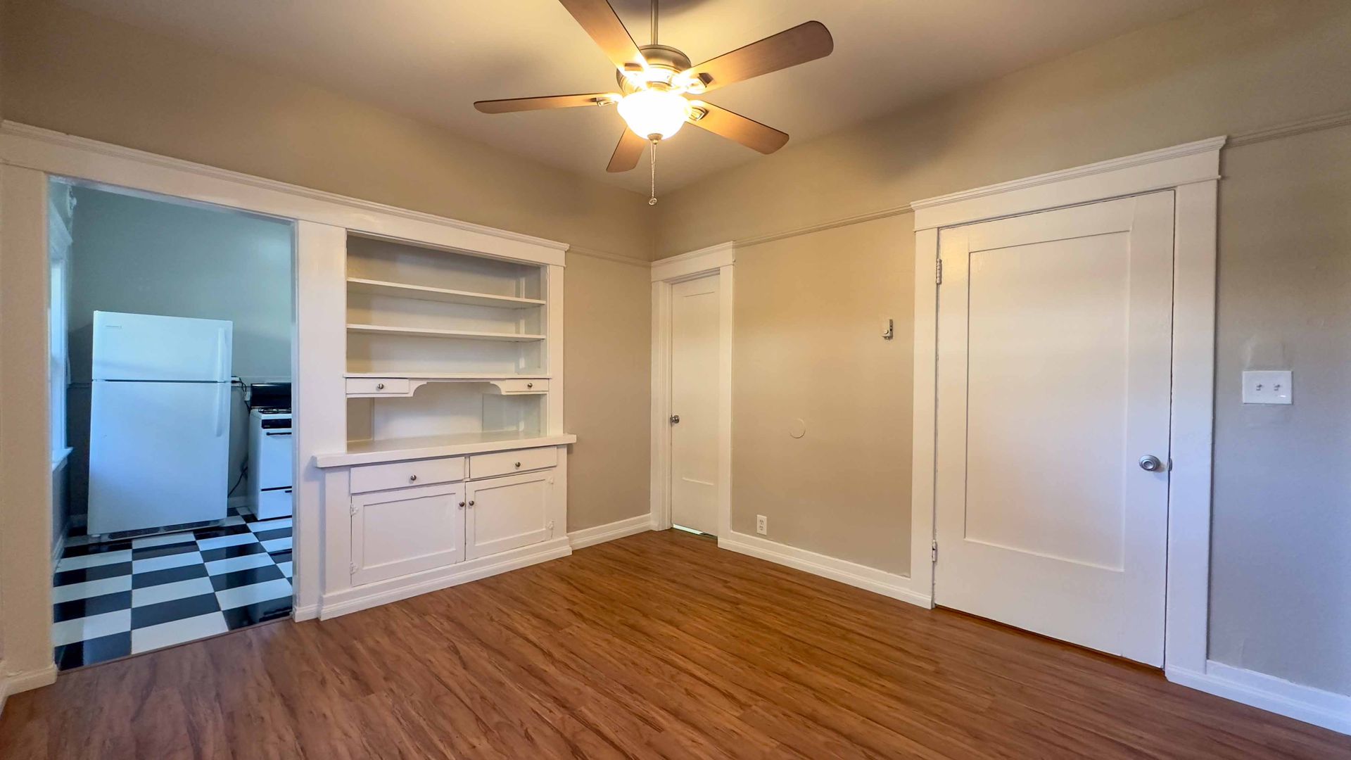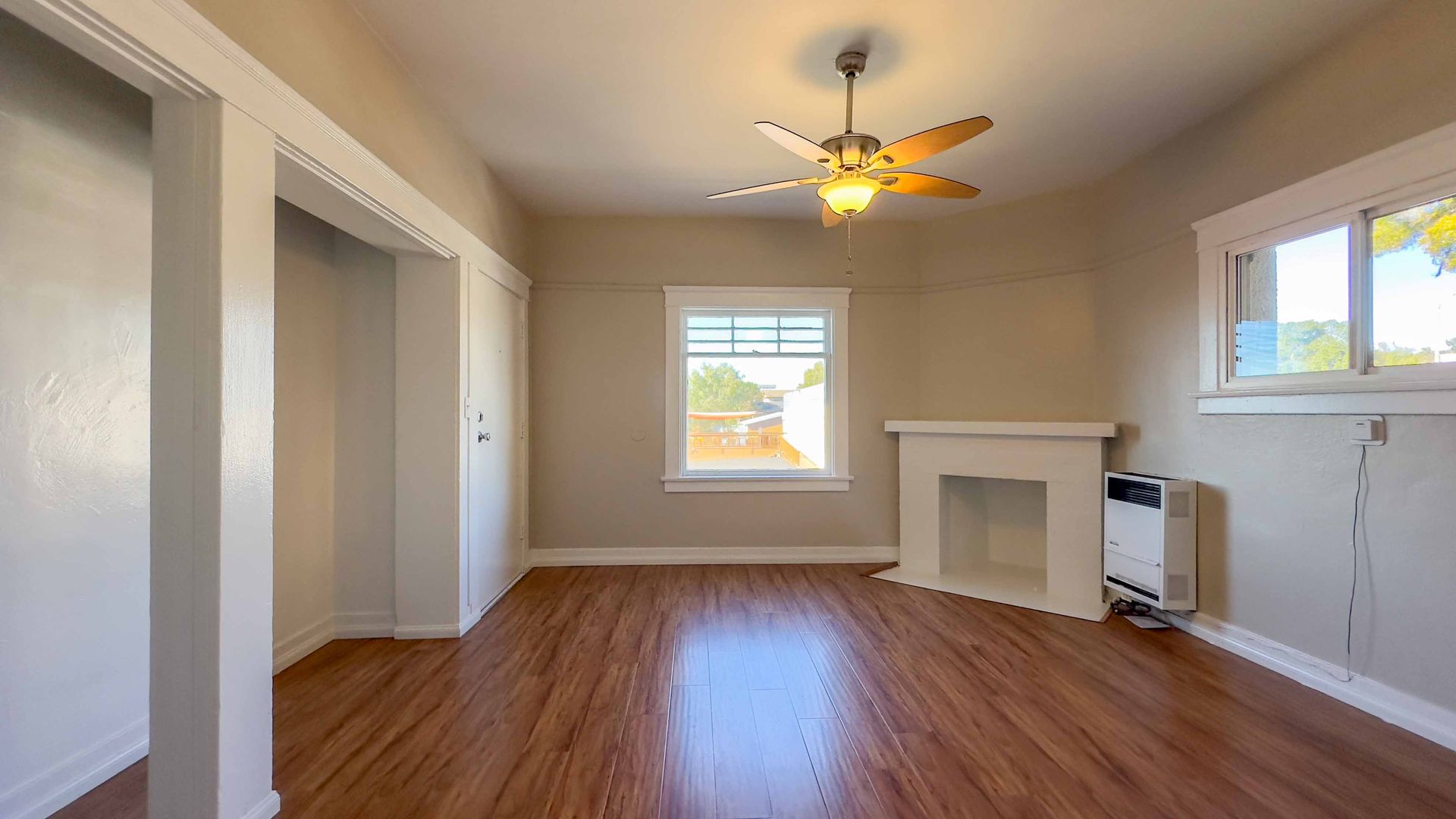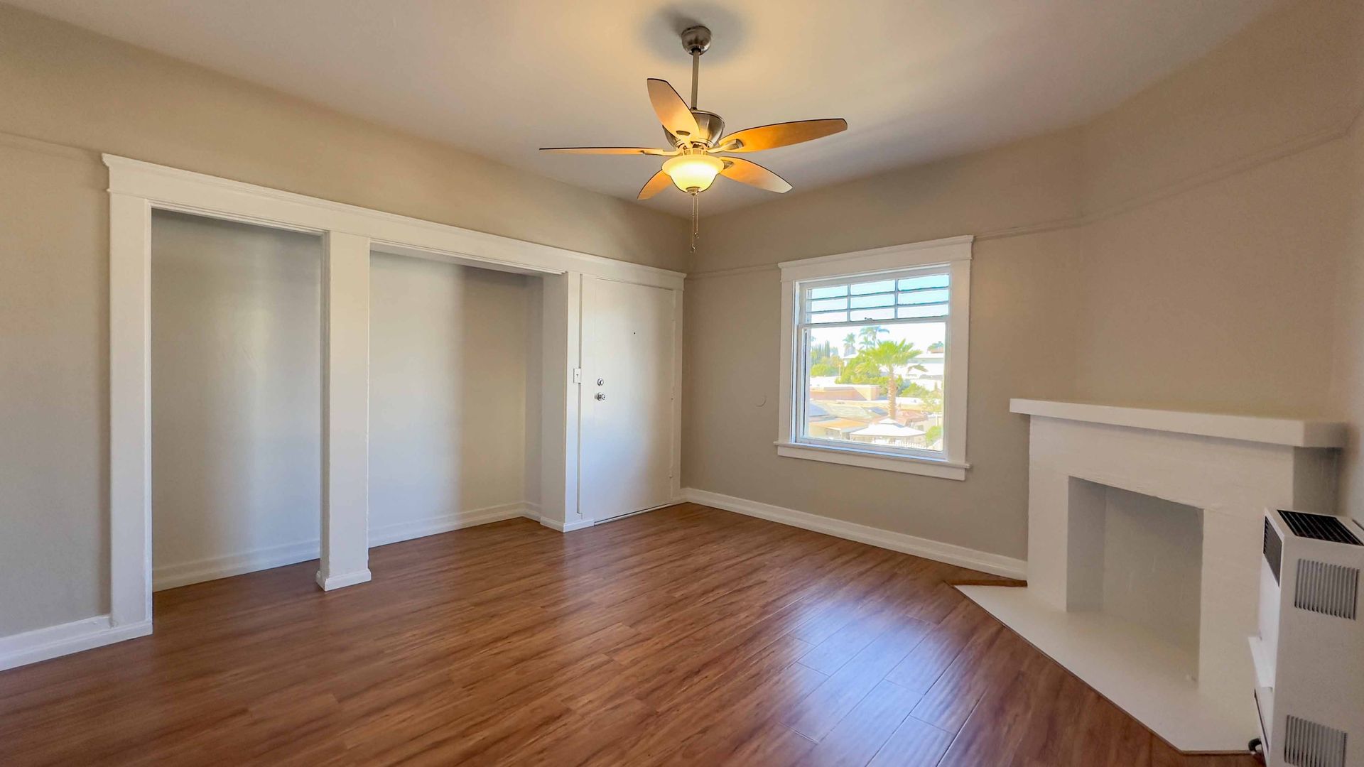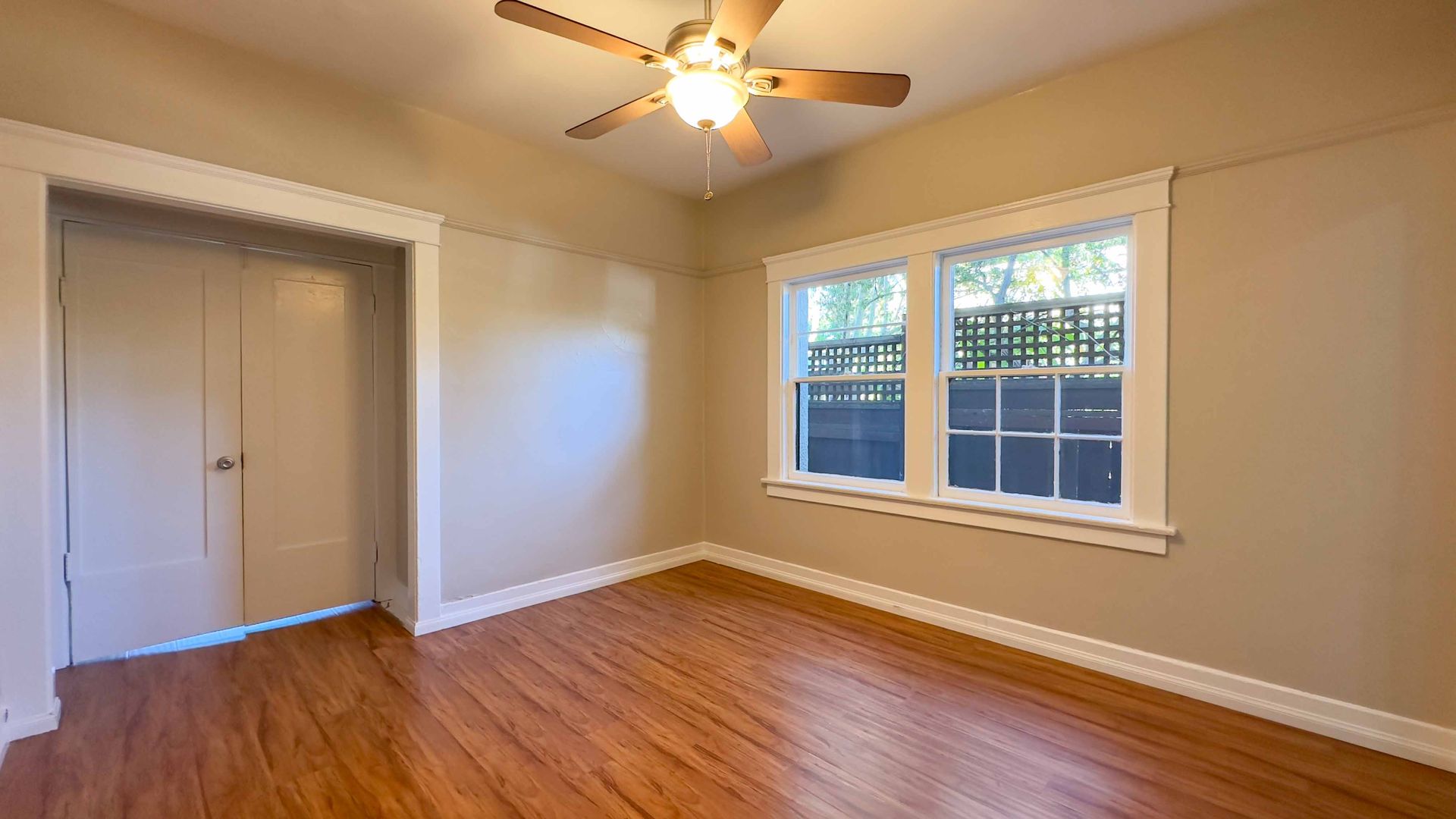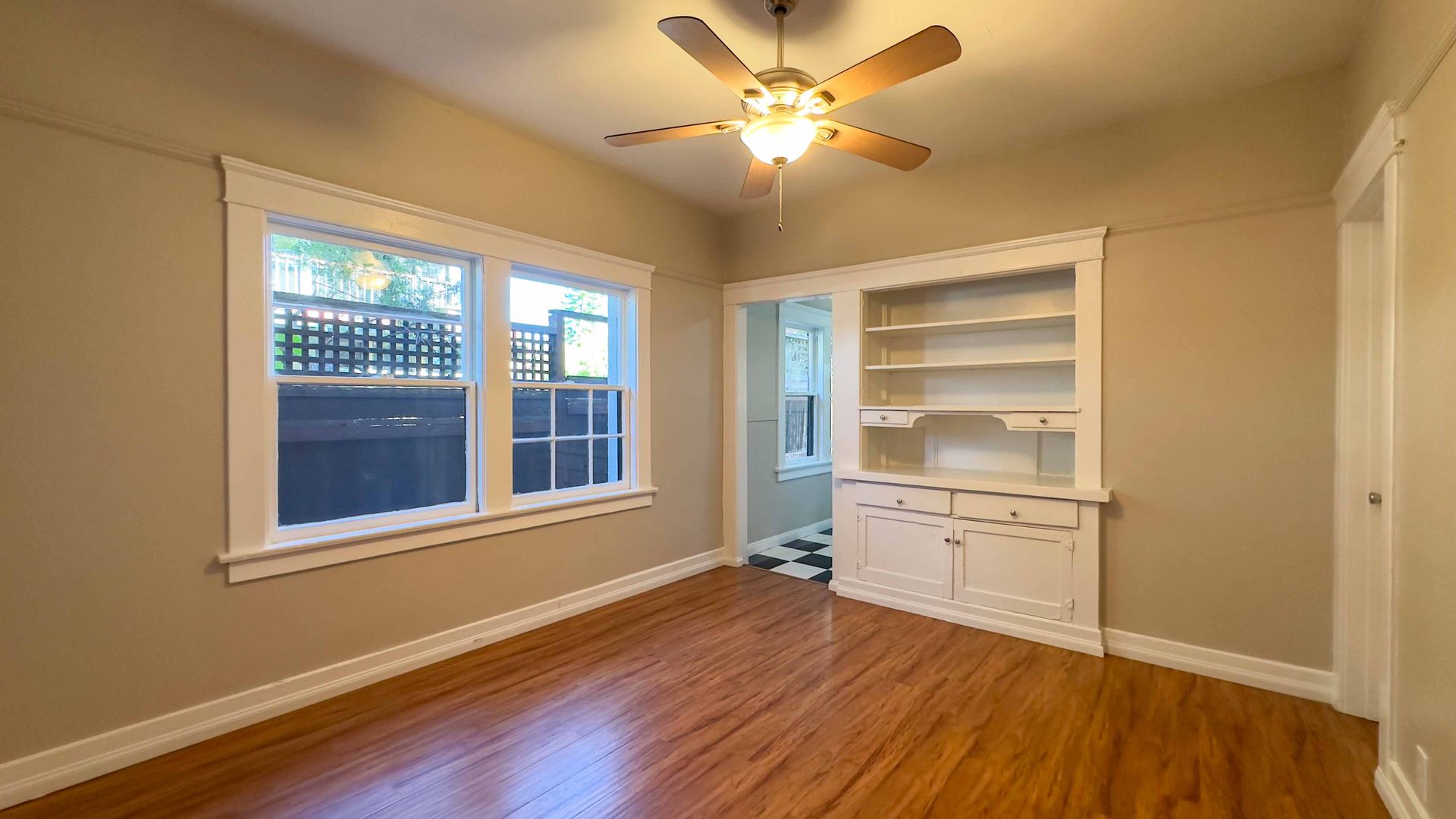 Natural light floods the apartment through the large windows, creating a warm and inviting atmosphere. Stay cool during the warmer months with the ceiling fans that are installed in the apartment.