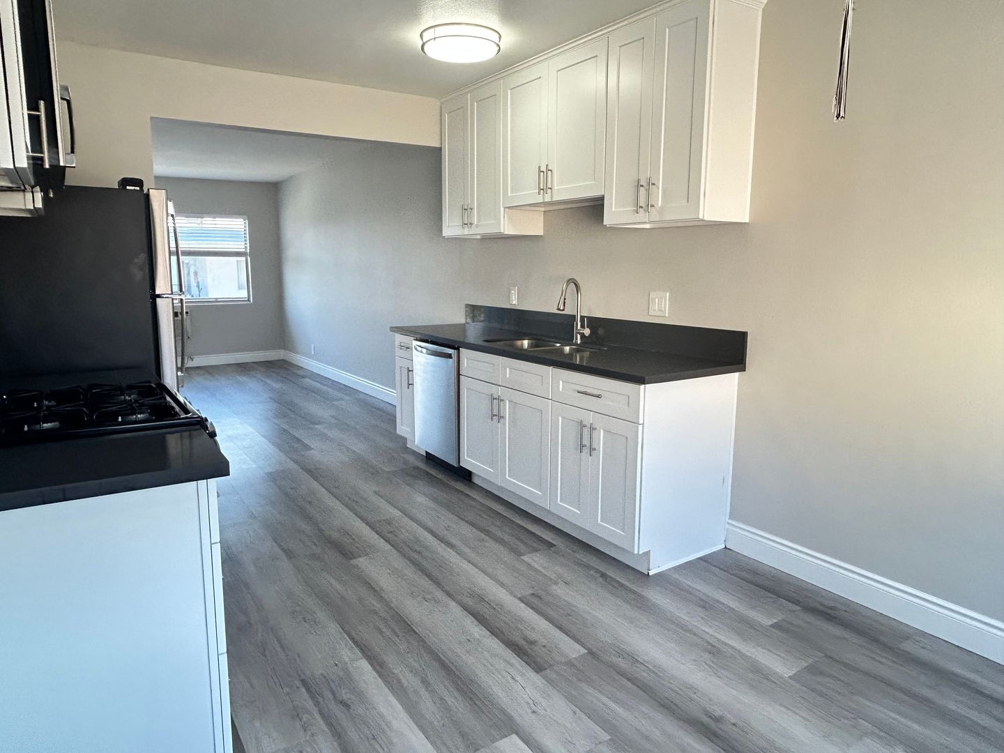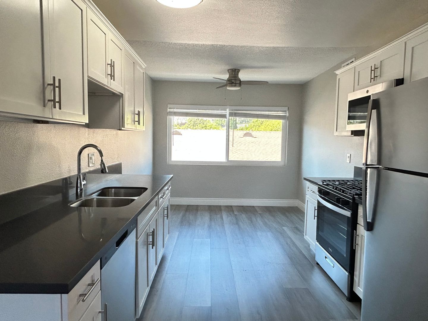 -Stainless steel kitchen appliances, such as gas stove/oven, microwave, dishwasher and refrigerator