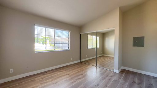 Welcome to your new home in sunny San Diego, CA! This stunning 2-bedroom, 2-bathroom apartment is designed with modern living in mind. The kitchen is a chef's dream, boasting stainless steel appliances and sleek quartz countertops. The in-wall A/C unit ensures you'll stay cool and comfortable all year round. The apartment features beautiful wood plank flooring throughout, adding a touch of warmth and elegance to the space. The bedrooms are equipped with mirrored closets, providing ample storage while enhancing the sense of space and light.
