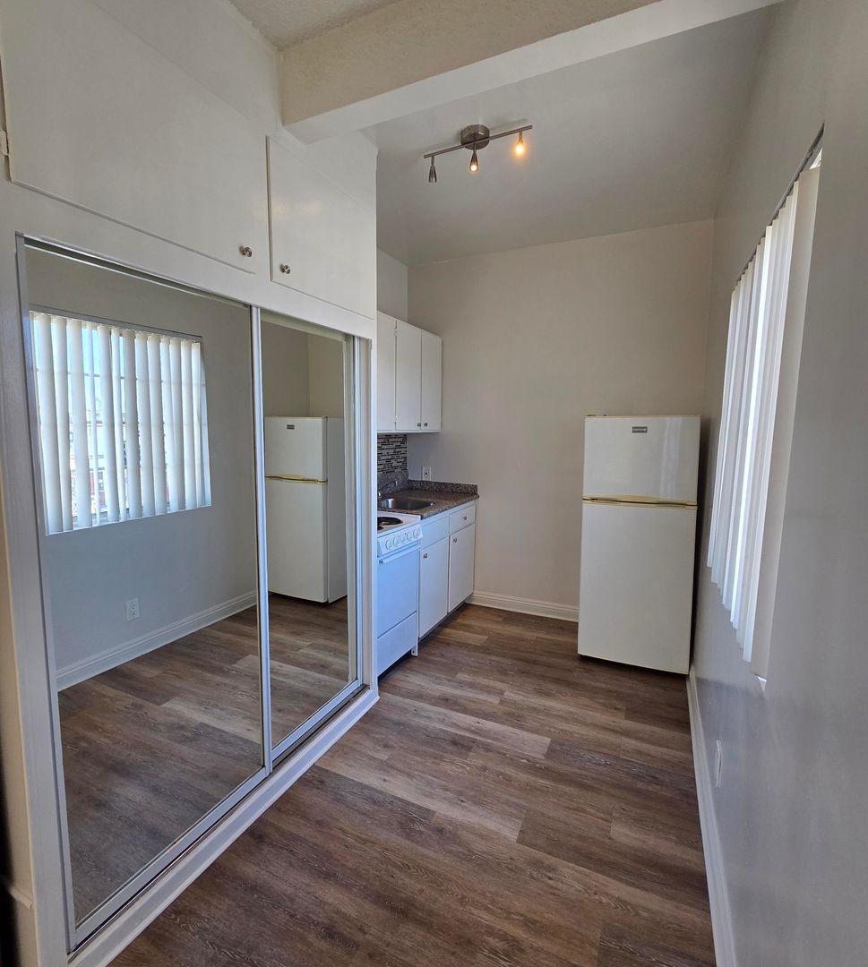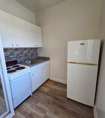 This apartment has tile flooring throughout, includes refrigerator and stove, and has the added feature of an on site laundry room.