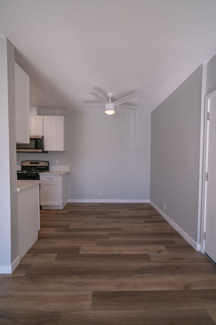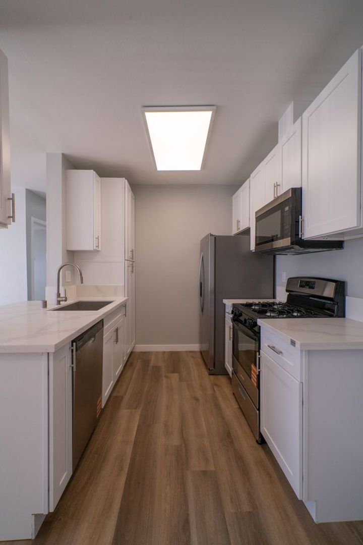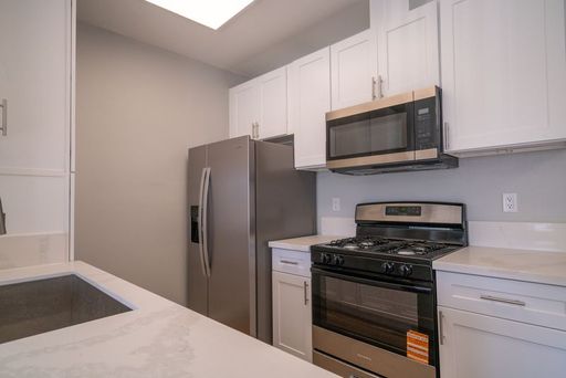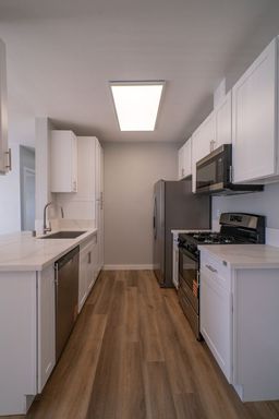 -Stainless steel appliances in the kitchen, including a refrigerator, stove, and microwave, adding a sleek touch to your cooking space.