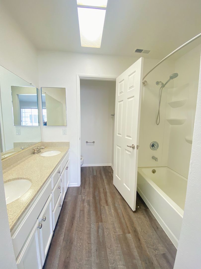 * Beautiful wood like flooring throughout and carpeted bedroom