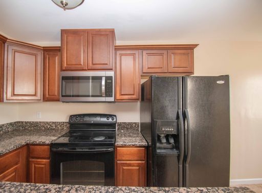- Kitchen equipped with: Electric range, refrigerator, dishwasher & built-in microwave