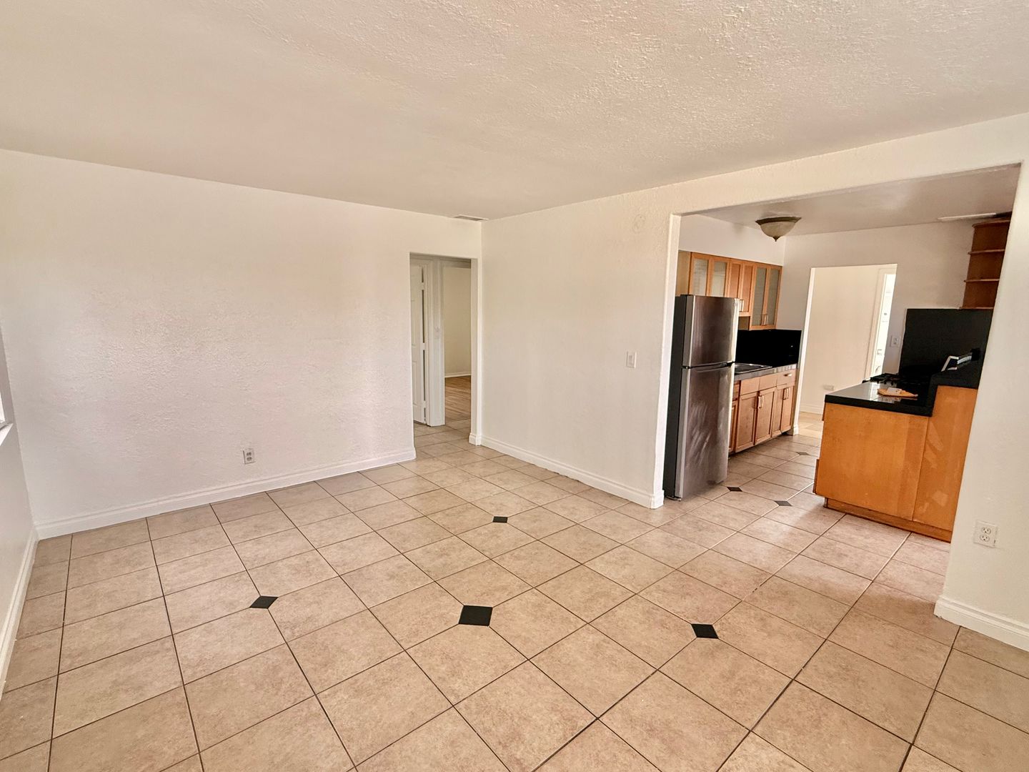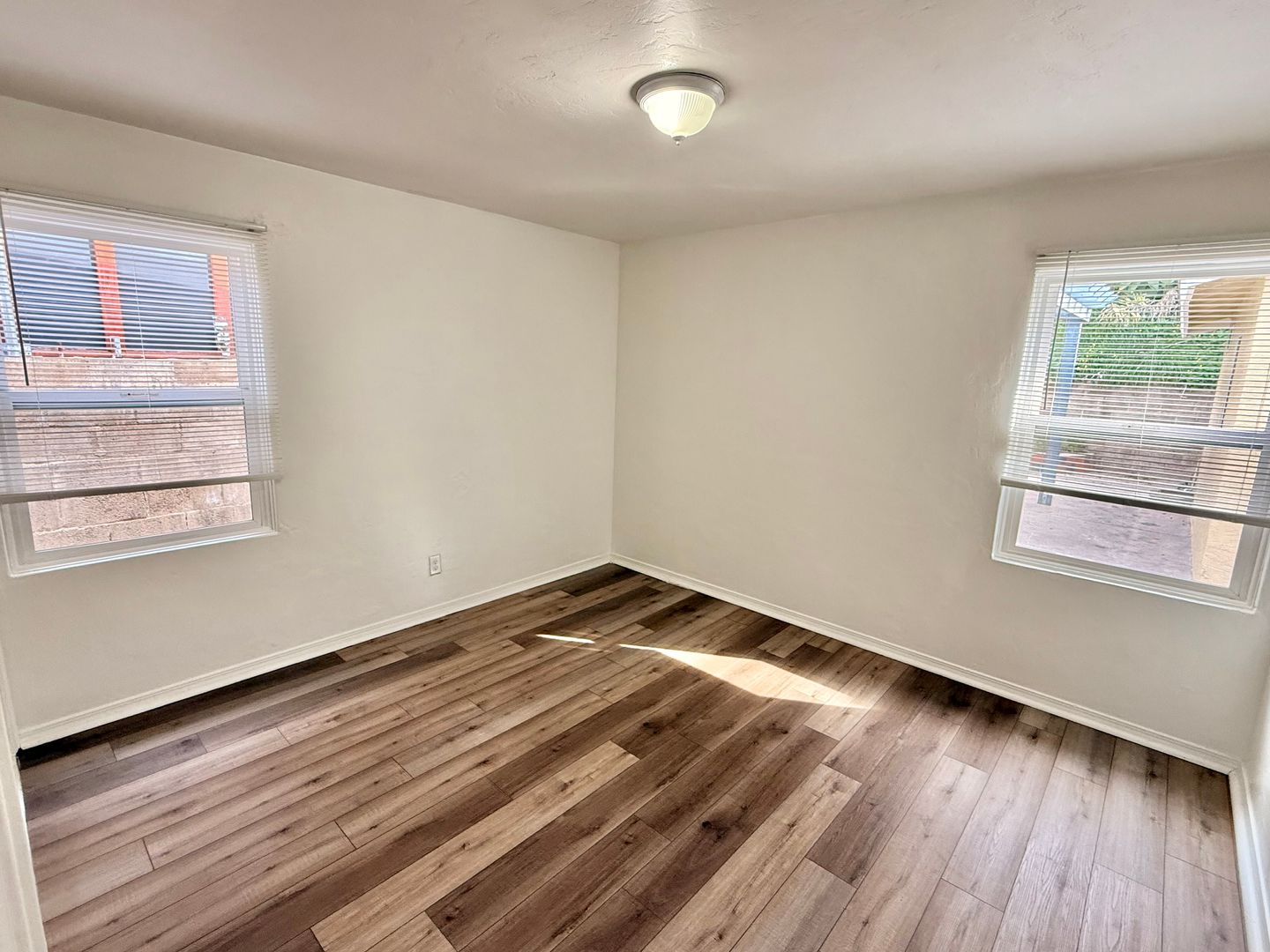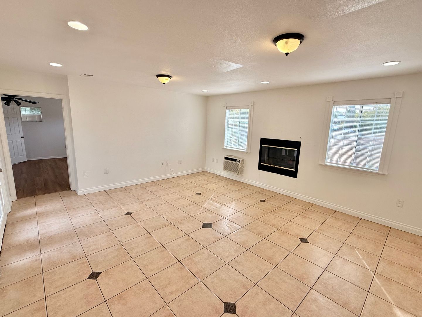 - Tile floors in living areas and plank floors in bedrooms (no carpet)