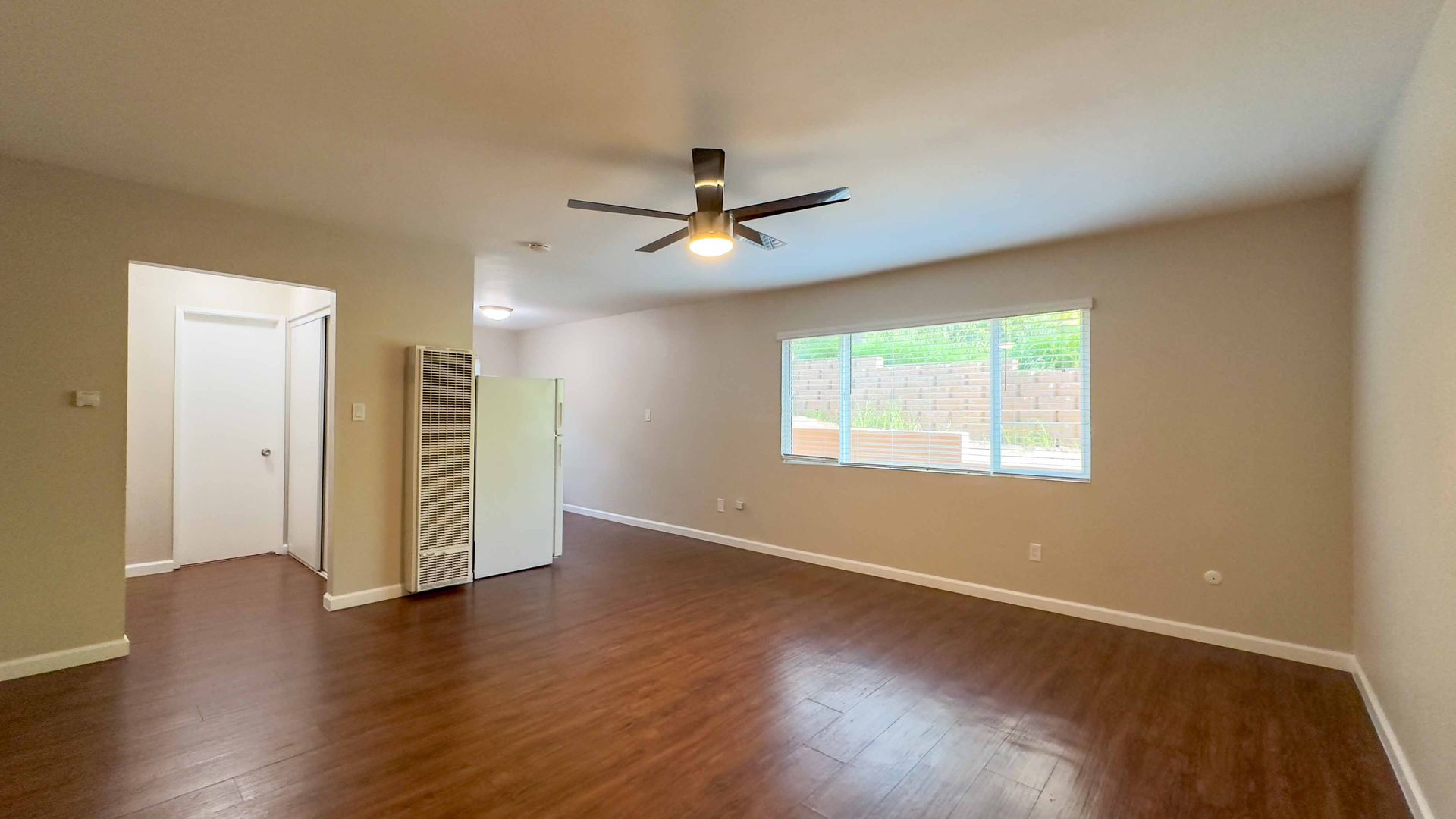 - Freshly-painted walls in warm neutral