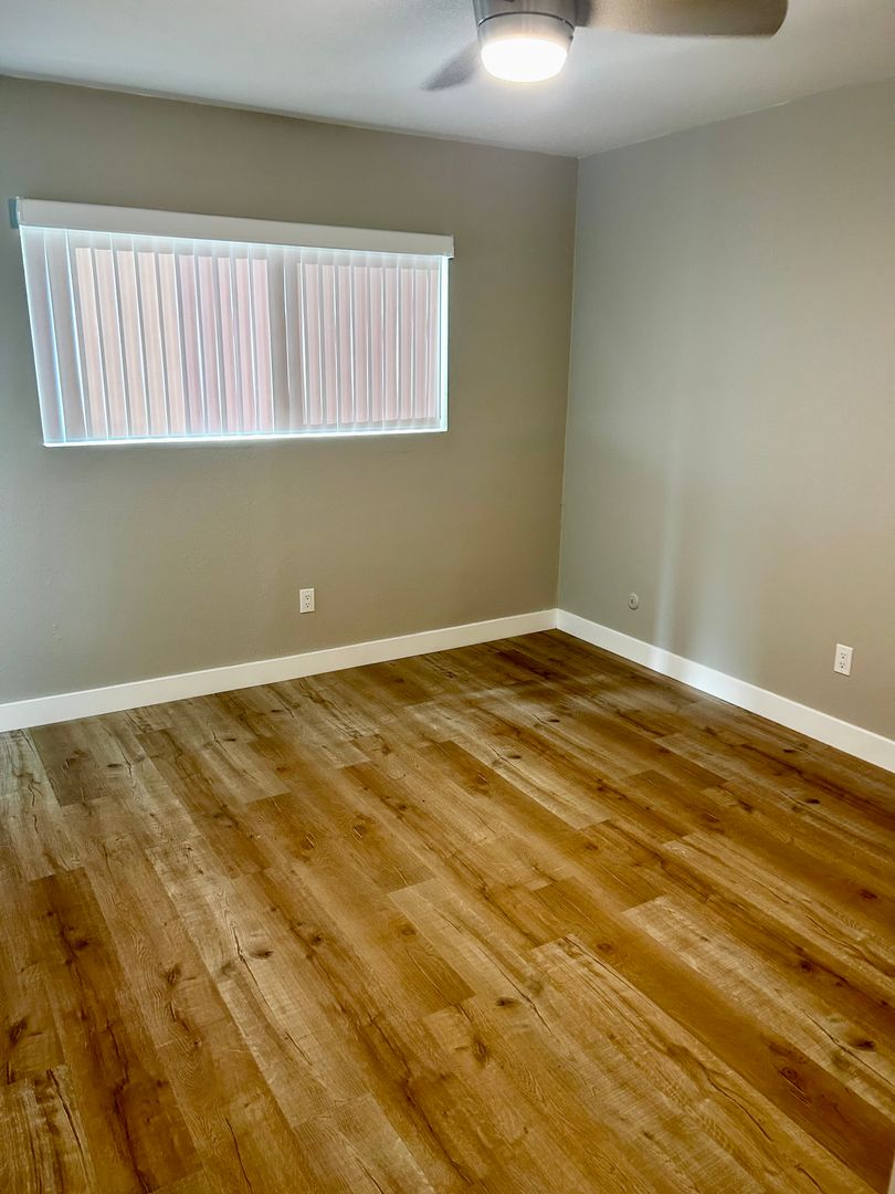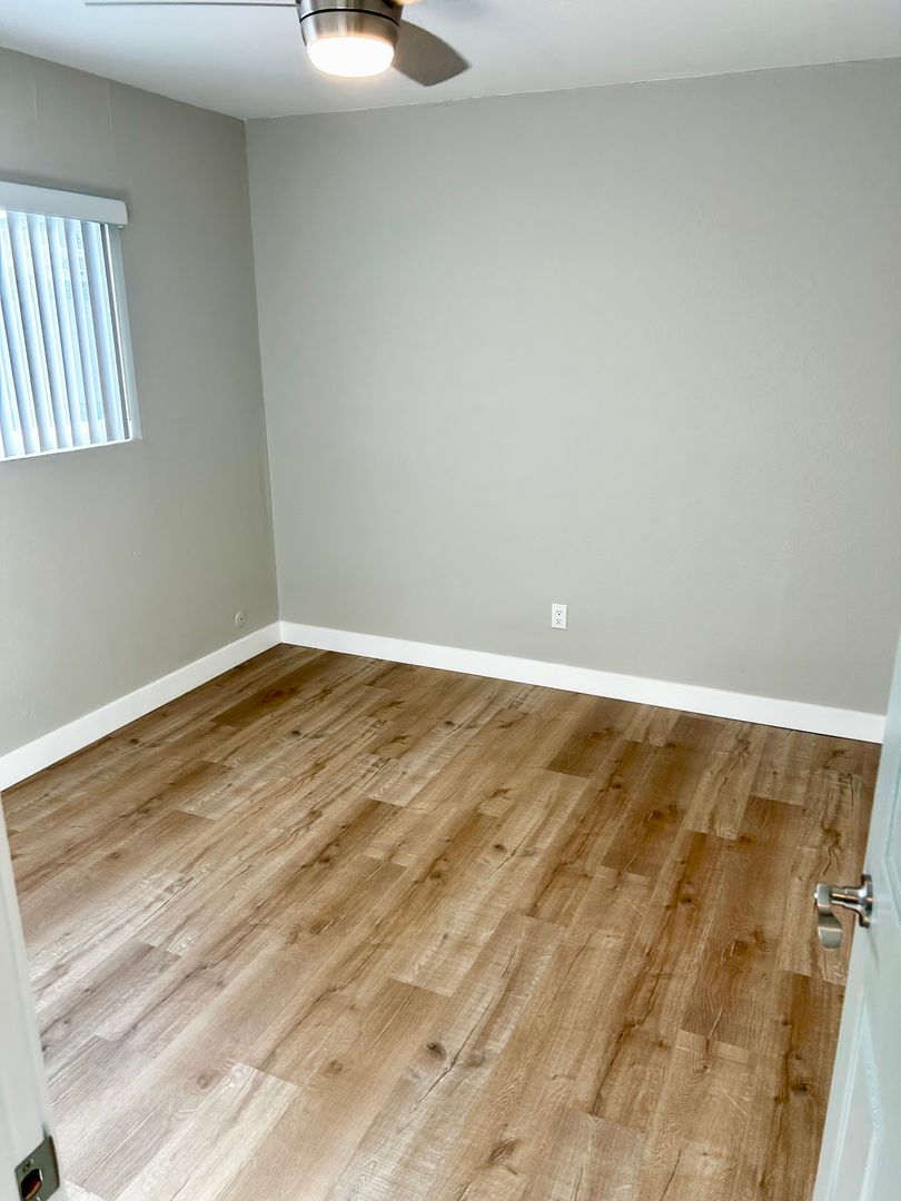 * Beautiful wood like flooring throughout and carpeted bedroom